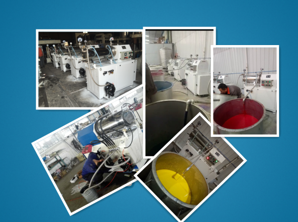 臥式密閉砂磨機(jī)是一種采用濕法研磨分散、筒體水平安裝、連續(xù)密閉生產(chǎn)的化工設(shè)備;型氣動(dòng)雙隔膜泵(或齒輪泵)將經(jīng)過(guò)預(yù)分散、潤(rùn)濕處理的固液相混合物料輸入筒體內(nèi),物料和筒體內(nèi)的研磨介質(zhì)一起被高速旋轉(zhuǎn)的分散器組所攪動(dòng),使物料中的固體顆粒和研磨介質(zhì)間產(chǎn)生強(qiáng)烈的碰撞、剪切,在短時(shí)間內(nèi)達(dá)到物料顆粒的磨細(xì)和分散聚集體的目的。研磨分散物料效果是生產(chǎn)油漆、油墨、染料等產(chǎn)品的設(shè)備